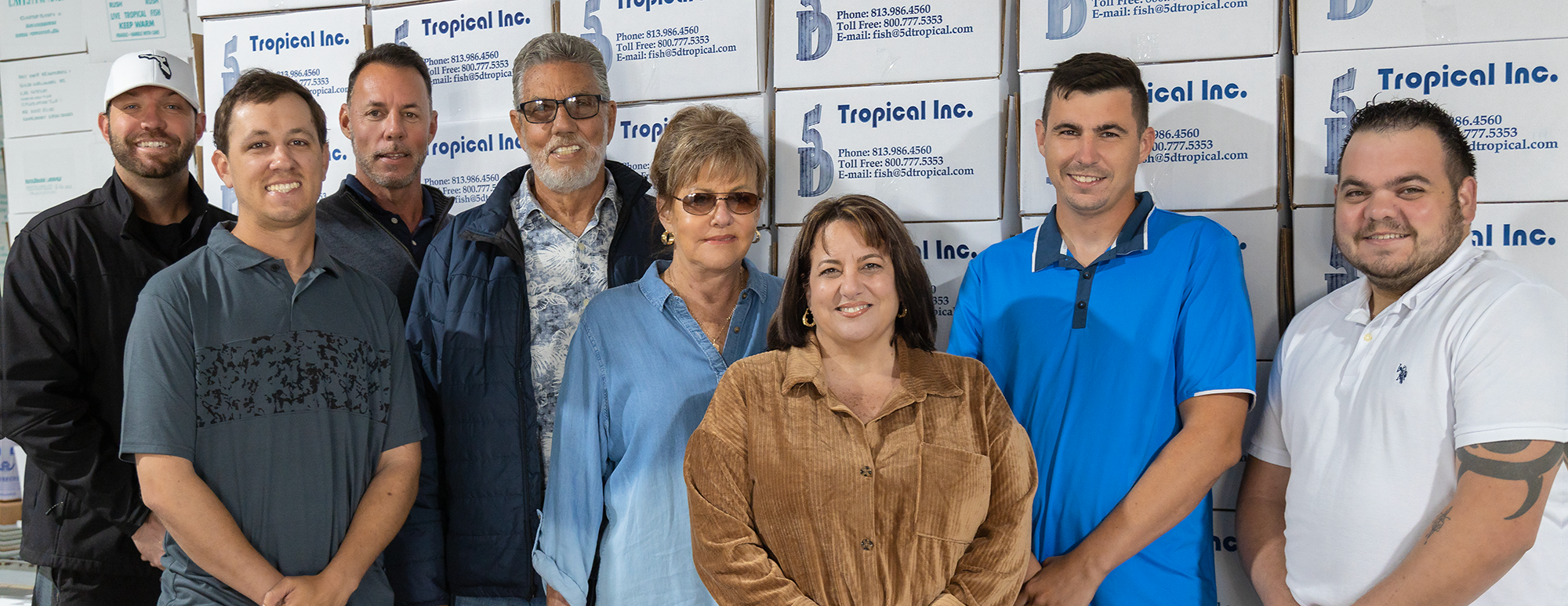 5D Tropical is owned and operated by the Diaz family. Each family member being well-trained and educated in the fields they manage, with the fourth generation now joining the business. The original founders, Joe and Anita Diaz, govern the overall operation of the company, setting and obtaining future goals and challenging departments with their expectations; Jason Diaz, acts as the administrator of overall operations with an emphasis on domestic livestock management; Damon Diaz, is the supervisor of grading/counting and quality control as well as manager of imported livestock and Stacey Diaz, is the office manager, each work toward a common goal: to produce the best tropical fish available while providing personalized and professional service.
